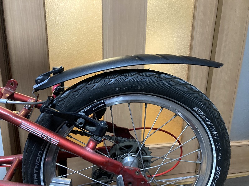 都内ポタの輪行用に5LINKSを導入したので、DAHONは駐車場まで往復用に用途が変わっているのですが、泥除けがないので雨上がりに車に乗るときは歩いてました。パーツボックスに未使用の泥除けがあった事を思い出したので付けてみました。