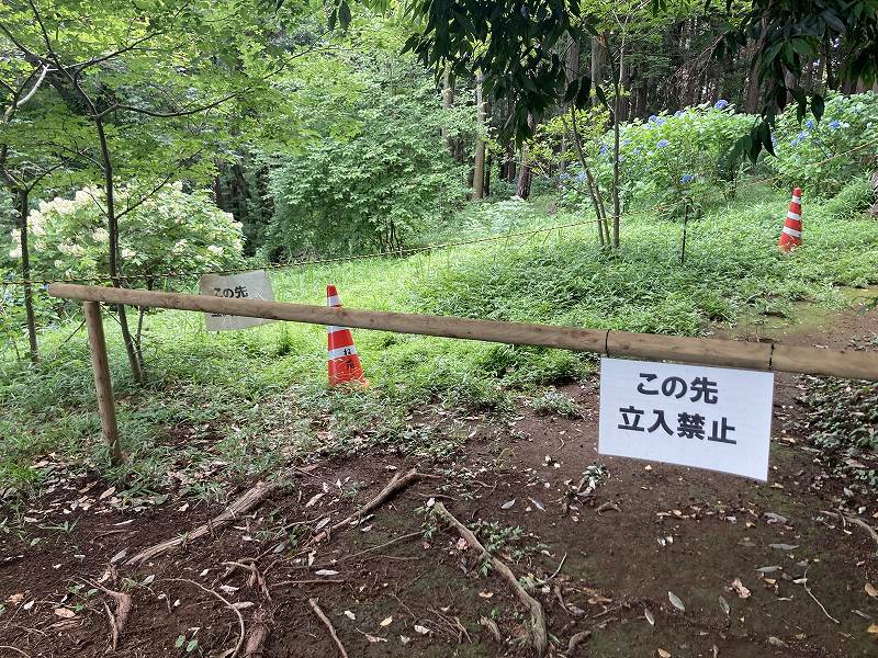 あじさいはどこかな?あ!柵の向こうに咲いてる!入るところがないなーーと通過します。ちょっと咲いていると事があったけど、通行止めなのでさっきの場所には行けないんですね。いい感じに咲いてたのにな〜。ということで人も10人くらいで、アジサイも5株くらいしかなかったので残念でした。