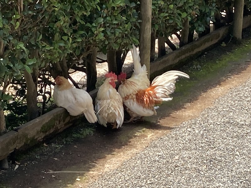 古民家が2件保存されているようだったので自転車を通路に留めて入ってみました。鶏?チャボ?が放し飼いにされていてかわいかったのですが、近寄ったら逃げそうだったのでやめておきました。手入れが行き届いていて足を踏み入れるのに躊躇するくらいです。