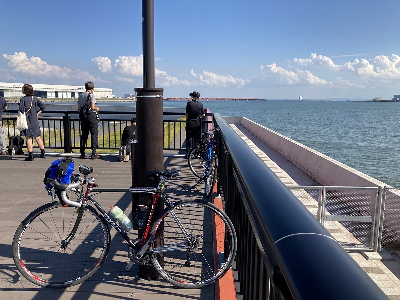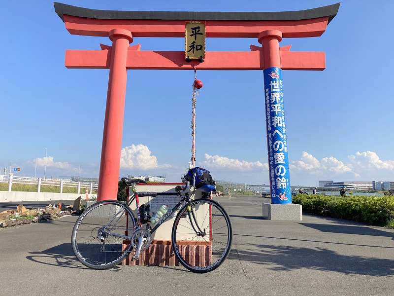 海まで2024(多摩川ルート)で羽田空港まで行ったのですが、多摩川の河口ってどこだったのかな?(笑)羽田空港の端っこには「平和」とかかれた大きな鳥居があります。周辺にはベンチがいっぱいあってみんな海を眺めてましたね。ここが河口かな?