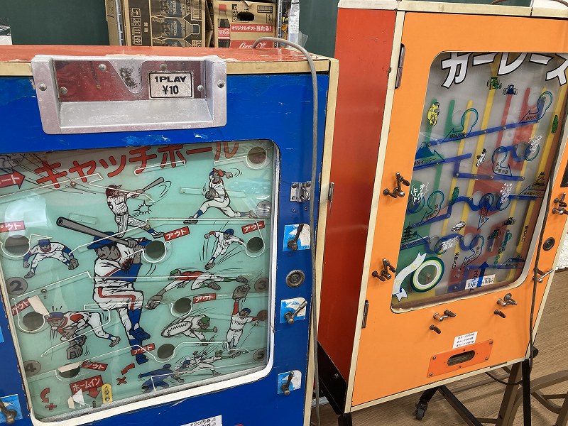お爺さんとお婆さんがやっているらしく、お爺さんが焼いてくれています。写真もいっぱい撮らせてもらえました。店内を見ると定食屋さんだったみたいですね。駄菓子屋さんにあるゲームもあったりして子供たちの集まるお店だった事が想像できますね。