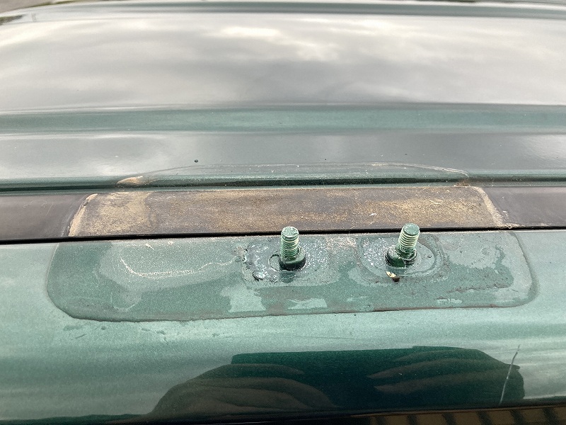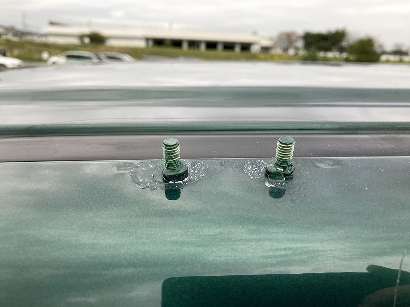 ジムニのルーフレールのカバーはプラスチックなので経年劣化で割れてしまう事がよくあるそうです。今回も内装外しで抉るだけで簡単に外れたのですが爪が1つない状態でした。この10ミリナットを4つ外すとレール本体が外れます。取り付け部分が錆びてたり汚かったりするらしいけど、この車は綺麗でした。(もしかしたら交換してあったのかもしれませんね)という事で、濡らしたスポンジで泥を落として乾燥させてからワックス掛ける事で錆対策をしておきました。