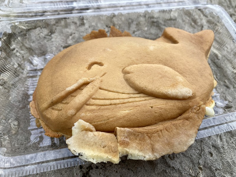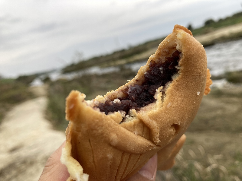 いい場所を確保したので実食!くじら焼きはたっぷりのあんこが入っていてめちゃくちゃボリュームがありました!つるつるでニコニコしているのでちょっと食べるの躊躇するかも?あんこは甘さ控えめで美味しかったです!おまけでクッキー迄もらってラッキー!