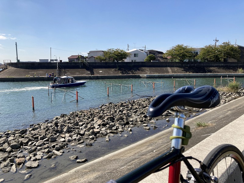 多摩川サイクリングロードの端っこはこの鳥居の手前にあるレンガ堤(レンガの胸壁)のあたりのようです。走行中に屋形船やレンガの壁が見えたので近づいたらレンガ堤になってました。大昔に洪水を避けるために作ったんですね。
