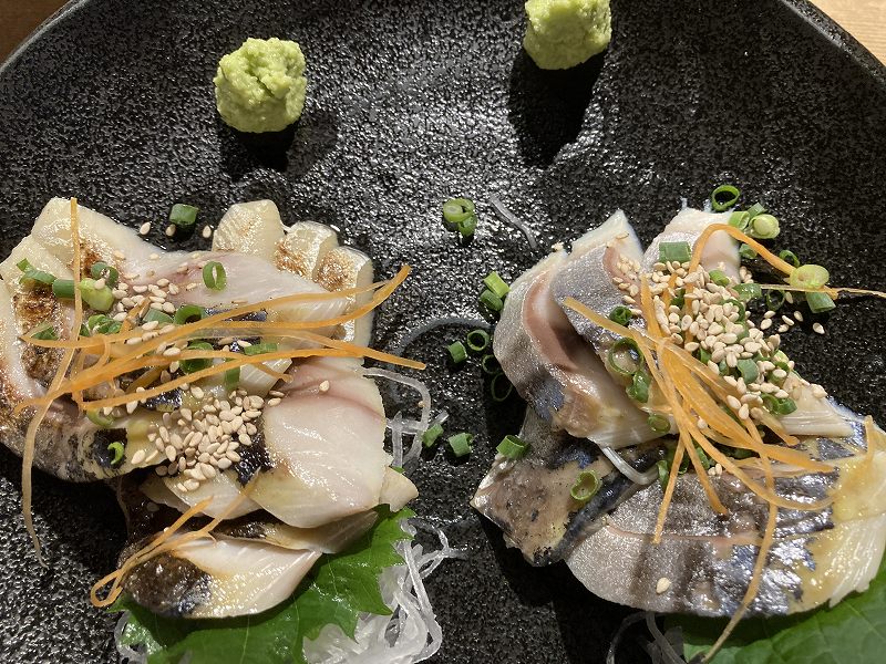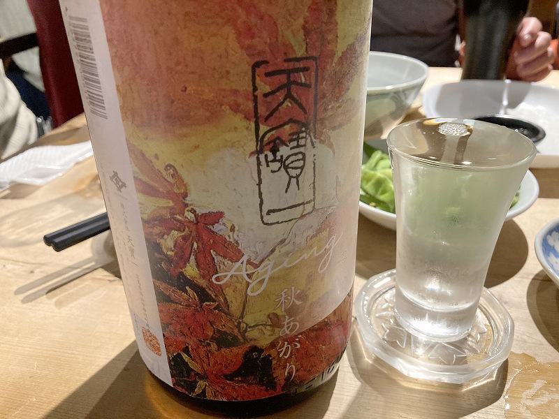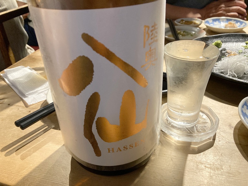 青森といえばしめ鯖ですよね〜。5人分注文したら半分は炙ってだしてくれました。どちらもワサビを付けて食べるとめちゃくちゃ美味しいです!お酒も進みますね。僕は日本酒飲みたかったので「陸奥 八仙(むつ はっせん)」行っちゃいました。ちゃんとラベルを撮影させてくれるのが嬉しいですね!