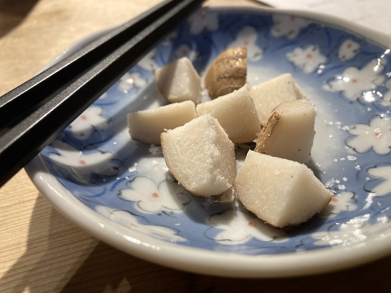 まずはビールで乾杯!お通しは東北のホクホクで甘いお芋です。な、、名前は忘れてしまいました〜