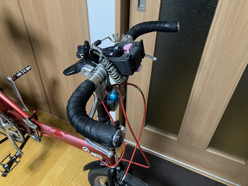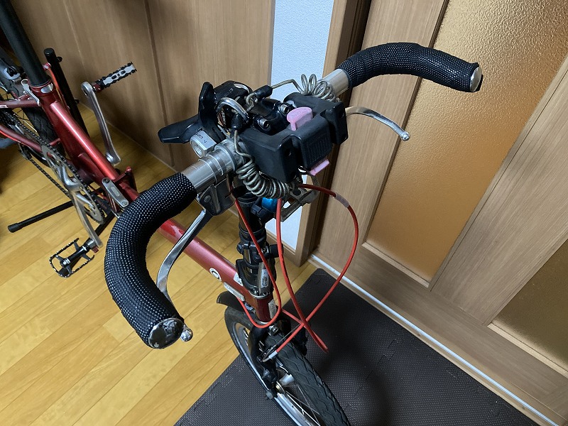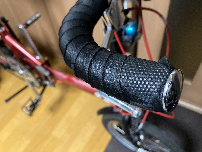 DAHONのバーテープの表面がはがれてしまったので交換することにしました。ドロップハンドルをちょん切ったブルホーンバーを使っているのでバーテープは半分だけ使いますが、前回の半分を置いてあるんですよね。
