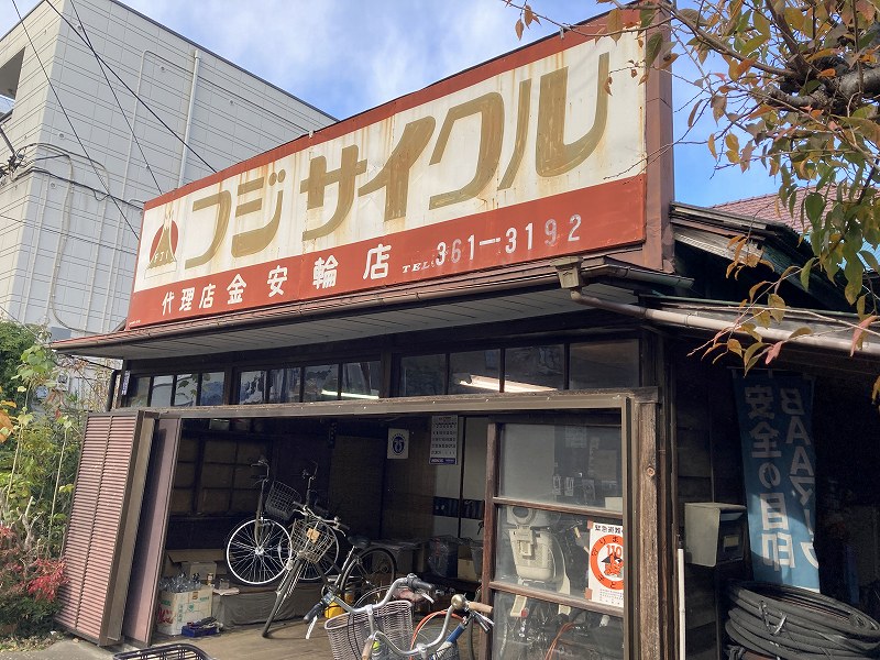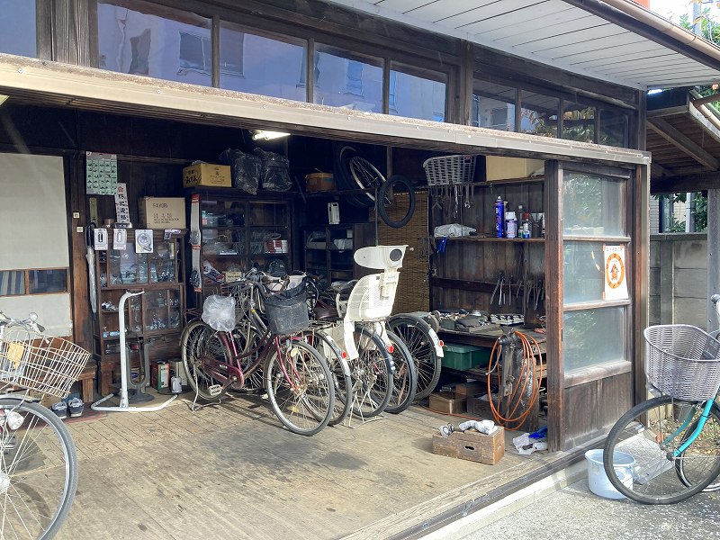 この自転車屋さんいい感じですよね〜。中学時代に近所のお兄ちゃんからロードバイクを貰ったときに整備してもらったお店がこんなお店だったので思わず中を覗き込みましたが、誰もいなかった(笑)