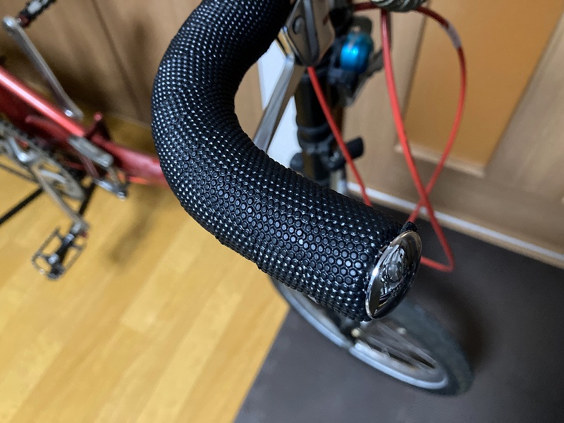 前回はいつ交換したのか?覚えてないけどシールが残って剥がしづらい!爪でゴリゴリしながらなんとか剥がしてバーテープを巻きなおして復活しました。表面のボツボツがきれいにあるので滑り止め効果が復活です!