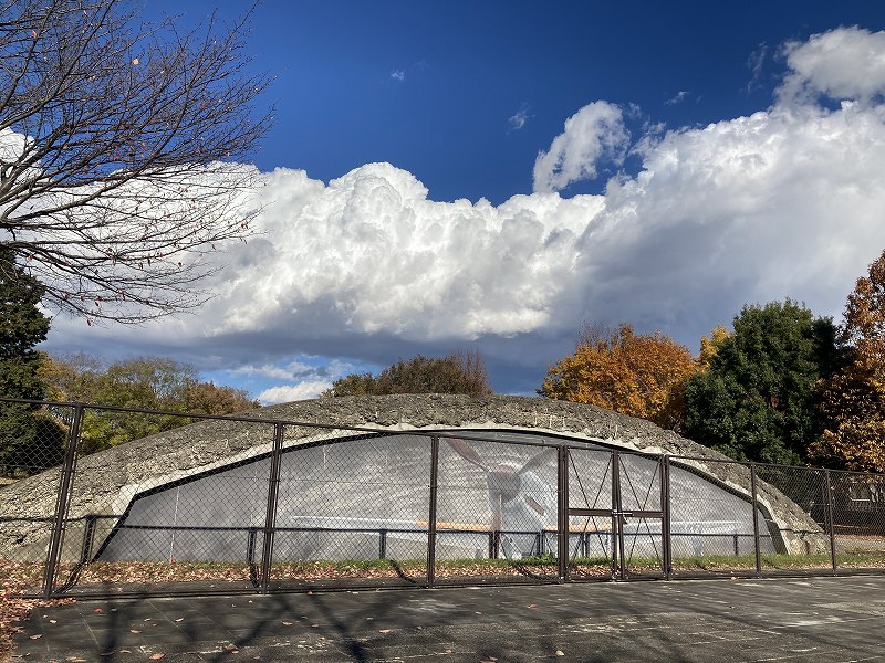 目的は達成したのですが、気持ちがいい天気なので大回りして帰ります。府中飛行場の横を走っていると「掩体壕」を見つけました(笑)なんかこの画像ネットで見たことある!