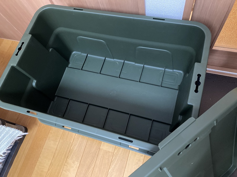 ラゲッジボックスは2つ重ねても動かないように深めにミゾがあります。中にも段差を作ってあるので万が一何かが漏れても荷物が浸らないように考えられてます。