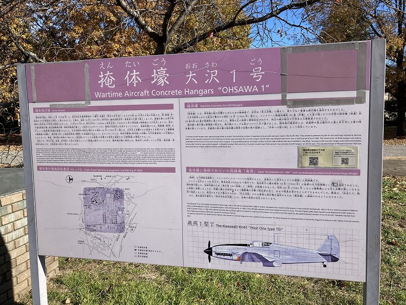 この公園には2つ「掩体壕」がありましたが、この看板を見るといっぱいあったんですね。燃料庫もあったみたいなのでヒューム管残ってたりするのかな?