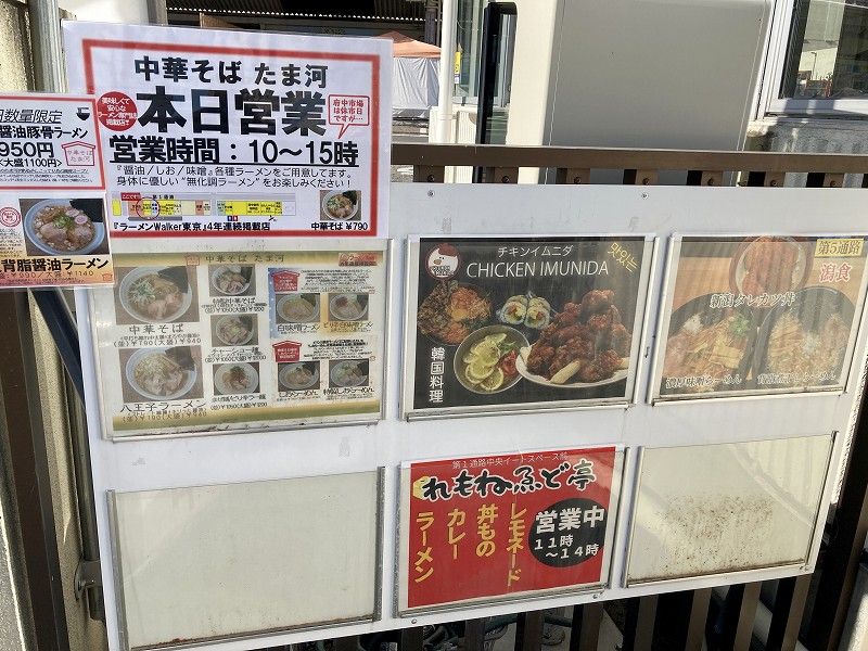 入口に近づくとラーメン屋さんの看板やタレカツ丼のポスターがあり、営業しているみたいです。ジーパン売ってたりしてなんかディープな世界ですね。ちょうど通りがかった人に確認したら日曜日は築地がお休みなので土曜日に来るといっぱい人がいますよ。って教えてくれました。僕はこの日曜日の雰囲気も嫌いじゃないですけどね(笑)