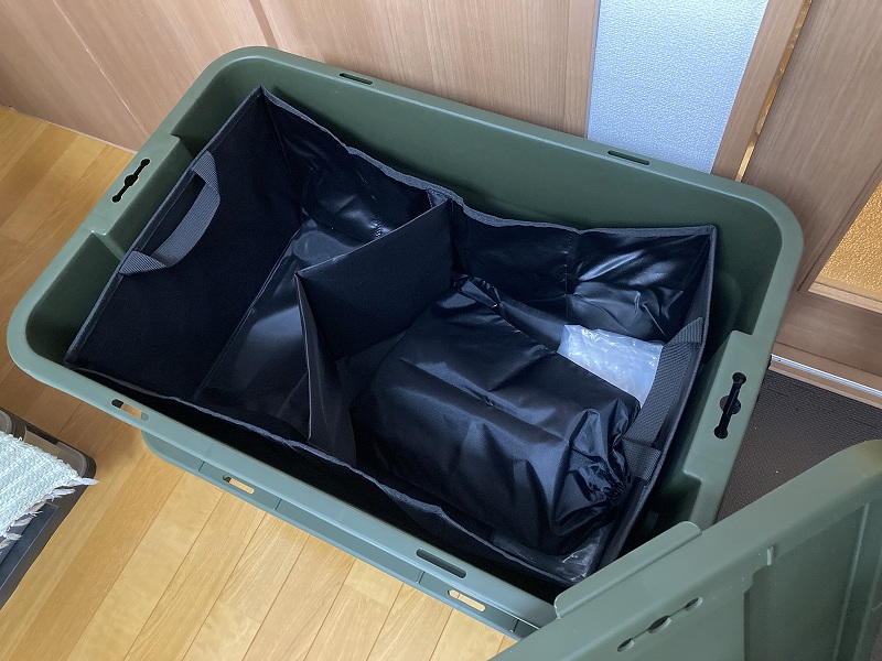 ソフトコンテナはラゲッジボックスにピッタリ入るので普段は荷物を入れたソフトコンテナをラゲッジボックスに入れておいて、ラゲッジボックスに何かを入れてル-フラックに載せること言う使い方もできますので便利ですね。