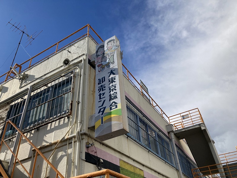 「大東京総合卸売センター」って書いてあるので卸売市場なのでしょうけど、人がいないので入っていいものかを入口で3分ほど悩んでました。自転車ラックにロードバイクがぶら下がってたので5linksを並べてフラフラとあたりを歩いてみると、怪しい入口が!