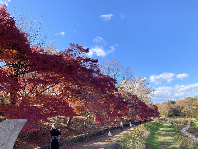 最後は紅葉スポットです。野川沿いには「野川公園」とか「武蔵野公園」が整備されていて、「武蔵野公園」の紅葉が特に凄くて野川沿いに桜並木ではなく、紅葉並木があるので真っ赤っかです。この辺りはBBQ広場になっているのでみなさんBBQされてました。炭しか使えないし、ハンモックやタープもダメなので使う事はないでしょう。
