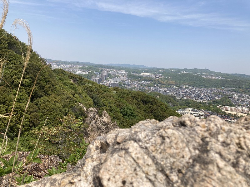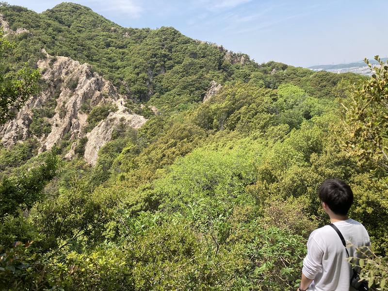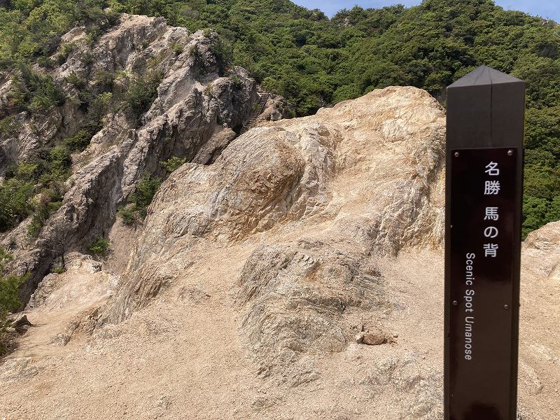 六甲山系にはいろんな山がありますが六甲全山縦走コースという登山ルートがあります。山陽電鉄須磨浦公園駅から始まってJR宝塚駅までの56キロの尾根を歩くのですが、その序盤にあるのが須磨アルプス「馬の背」です。