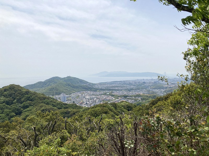 馬の背を登り切ったところにも展望台があって垂水や淡路島、明石海峡大橋を見おろすことができます。なかなかの絶景ですね。晴れてたらもっときれいだったでしょう。