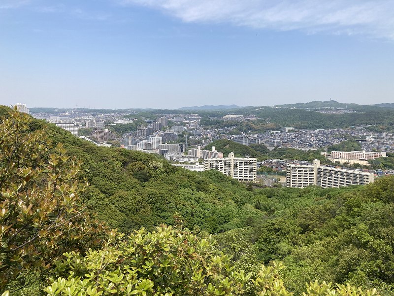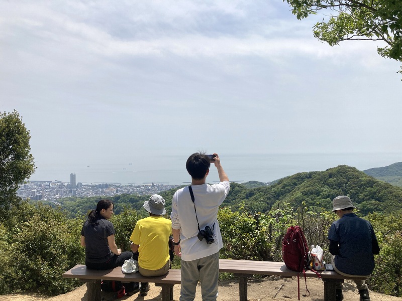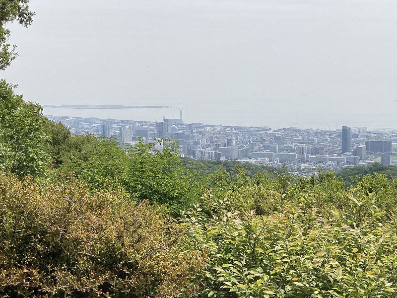 東山を登り切ったところにある展望台からは須磨海岸や須磨シーワールドを見下ろすことができます。遠くのポートアイランドや神戸空港、神戸大橋もよく見えるのでいい景色です。曇りだったので微妙ですが、気持ちがいい場所ですね。何時間でもぼーっとしていられそうです。展望台の横には「馬の背」があります。