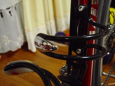 ささっと2つのボトルゲージを右側から取り出せるように取り付けて、うぉ!カッコイイ!GEL部分のシルバーと赤いELITEの文字もいい感じです。