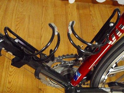 VIVALOにはボトルゲージ台座が2つある。クリスピにもあるけど1つは真横向いちゃってる(笑)ので使ってないです。でも暑いときに頭から水を被るのを見ていて「いいなぁ〜」と思ってました。やっぱり同じボトルゲージをつけたほうがカッコイイよなぁ。でも、身長がちっちゃいのでフレームサイズが大きくないから、シートチューブ側は縦にボトル抜くことができない。という事はサイドから抜けるボトルゲージを買ってみよう!