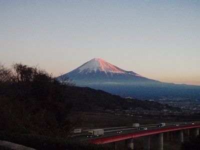 PC287503大橋JCTのおかげでしょうか?いつも道を間違える常磐道から東名高速へのアプローチもスムーズだったので日の出前には富士川SAに着きました。綺麗な日の出と富士山を見ることができました(撮影は息子です)
