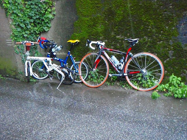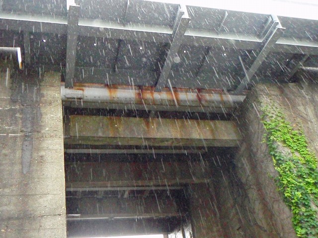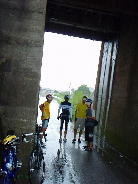 P9110341ぽつぽつと着ましたので、みんなで避難場所を探しているとゴロゴロと雷まで、、自転車にとって雷はヤバイので必死で緊急避難!!線路の高架下に緊急避難し、緊急(=一時的)のハズが30分くらい居ました??