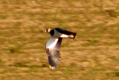 ここではタゲリに遭遇しましたよ。十羽近く居たのではないでしょうか?目視では白黒でしたが、トリミングしてみると図鑑と同じラメラメ緑(笑)きれいですね〜。カラスが追っかけまわすので飛行する姿もゲットです。