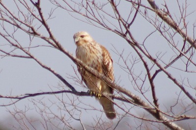 と思ったら木の上に白い物体が、、見るからに猛禽類で見たことがないものです。これって「ケアシノスリ」ではないでしょうか?ノスリにしては(撮った事がないですが)白すぎません??頭なんて真っ白でカワイイです。結構ドシッとしていて、おじさんが超近づくまでの長い間遊んでくれましたよ。