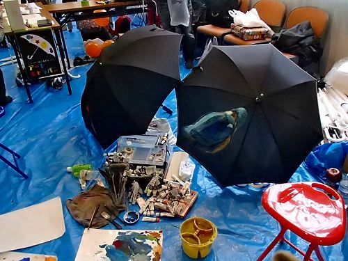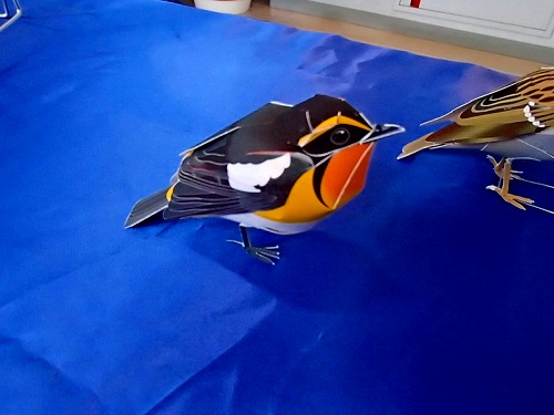 この後、BIRD-1グランプリの写真をみてまわった後は、2階でこんなに大きなペーパークラフトや傘に絵が書かれているのを見たり、水の館の外ではこんなにカワイイ鳥の絵(タマゴ式っていうらしいです)が売られてたりして楽しいめます。