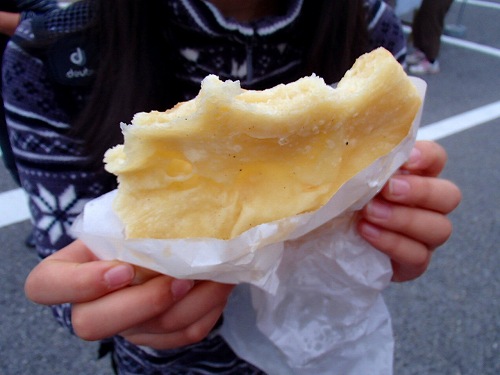 そろそろ、おなかがすいたので、駐車場スペースに移動して、まずは、去年、美味しかった「ハリオンのチーズパン」です。やっぱりおいし〜!!って写真撮る前に食べられてしまいました(笑)。