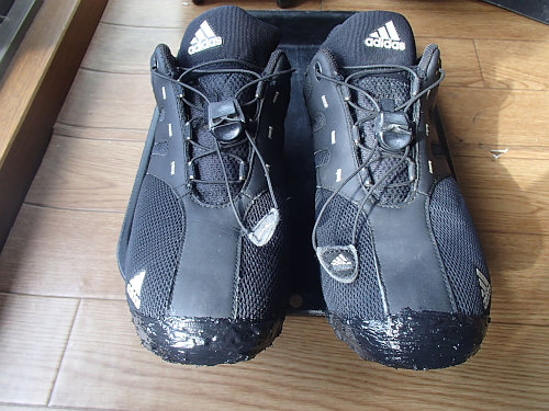 履き心地が良かったので修理を重ねて5年ほど使い先日捨てたズック靴(クリートのないミニベロ号、オールド号で使用)を思い出しました。