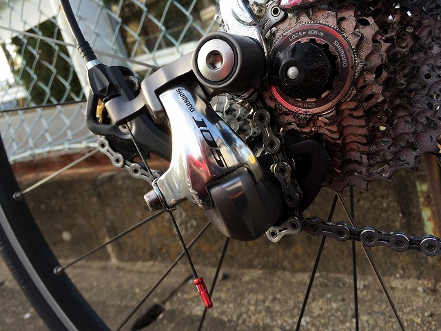 プーリーからチェーンが外れてますね。新品のRDがーー傷だらけ。