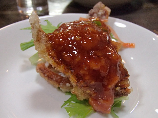 「脱皮蟹のから揚げチリソース」はkincyanさんが固いと食べられないと心配しましたが、、めちゃくちゃ柔らかい絶品でした。