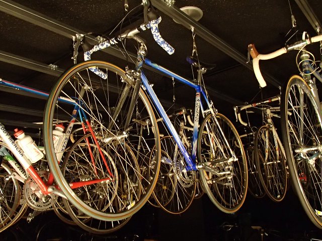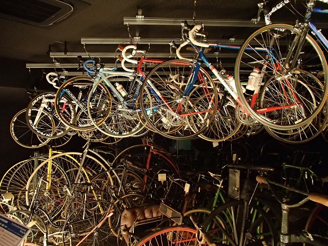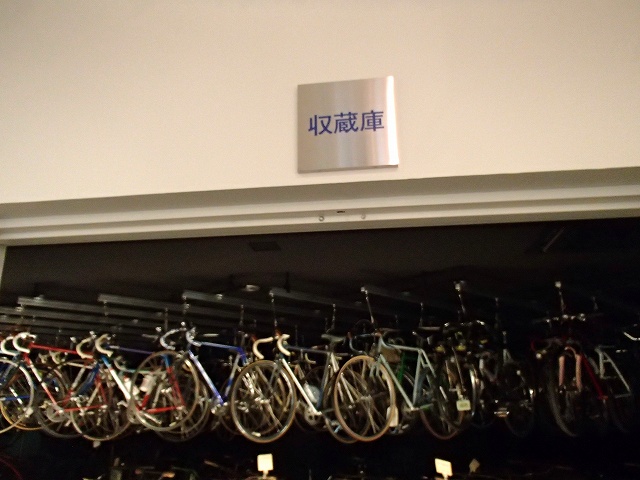 僕が一番気に入ったのは1階にある「収蔵庫」です。細かい説明はないですが、クロモリロードがいっぱいぶら下がっていて、綺麗ですよね〜。