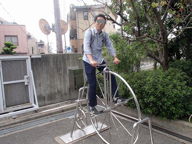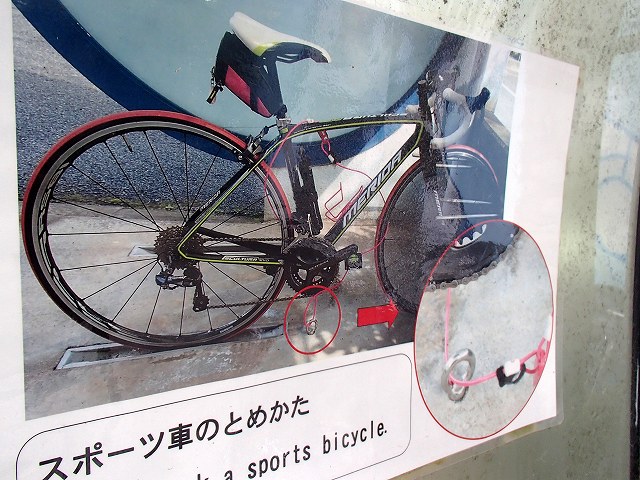 堺市の観光にはコミュニティサイクルは最適でした。平らな土地のあっちこっちに古墳や遺跡や公園があるので歩きでは遠すぎるので、自転車にピッタリです。さすが「自転車のまち」ですね。これは自転車博物館の駐輪場にあったフックなのですが、スポーツ自転車を停めるときにフレームを繋げるためのフックです。これがあると便利ですよね〜。