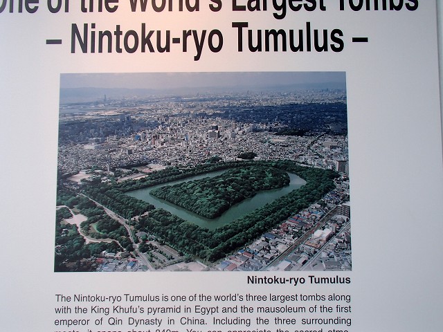 「仁徳天皇稜」はブラタモリで紹介されていたアングルは見られますが、全容は見ることができません。あまりにも大きいので自転車でないと周れません。「仁徳天皇稜」を上から見よという事で堺市役所の展望台に登ってみました。やっぱり全容は見えないんですね。これはもうドローンで見るしかないのですが、許可がないと飛ばせないのでダメですね。堺市役所にあった写真で全容を、、、教科書のままです。