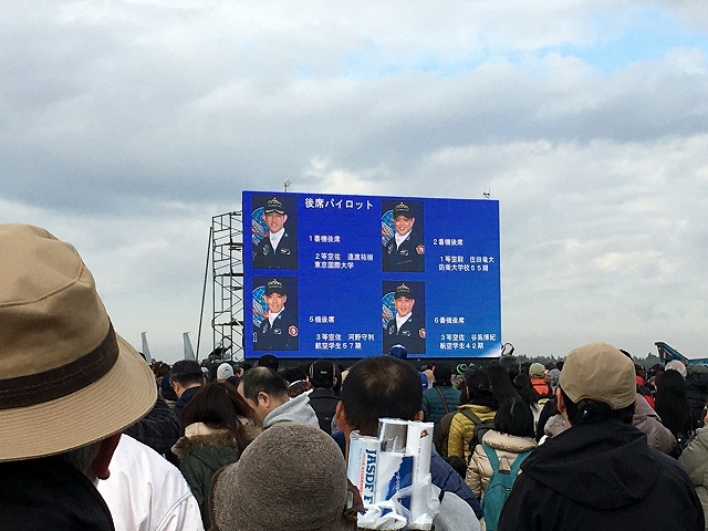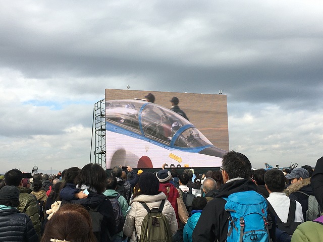 今回、初めて百里基地内に入りましたが、オーロラビジョン?に各種機体やパイロットが紹介がされるのでわかりやすいですね。まるでアイドル(笑)