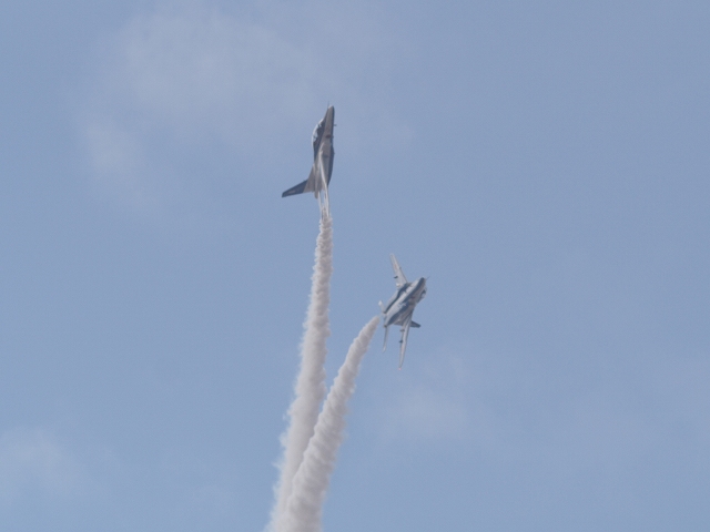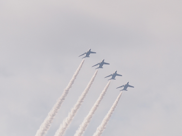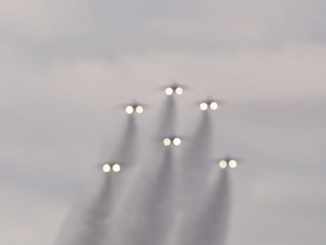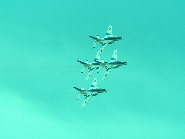 「ファンブレーク」4機の編隊飛行ですね。近い!!この時のカメラ設計が蛍光灯モードになってしまったので変な色になってしまいました。