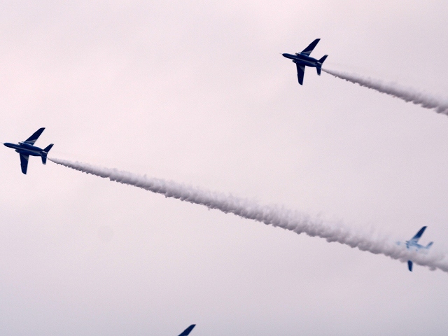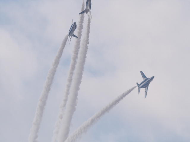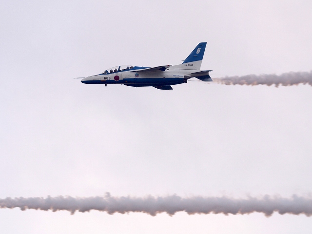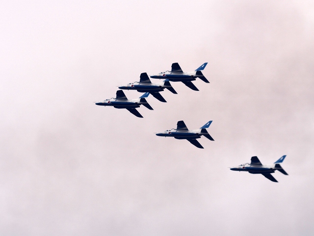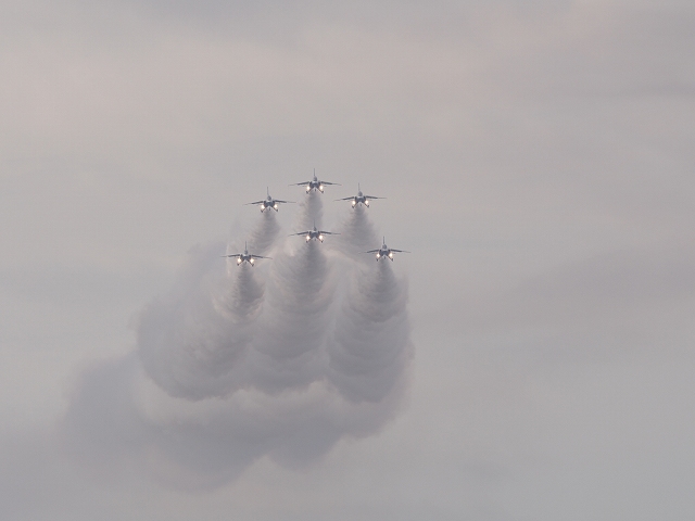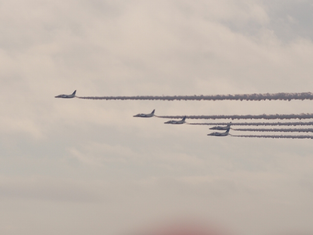今年の5月に仙台に行ったときに松島基地で見たかったのですが、三沢基地のT-4にエンジン損傷が見つかった関係で、点検のために全てのT-4の飛行を中止していたので、残念ながら見られなかったんです。でも、点検が終わったので復活してくれました。やっぱりブルーインパルスは必要ですねー。