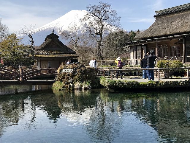 そして忍野八海です。まだ営業時間じゃないので一番奥まで車で入って、綺麗な景色を堪能してきました。