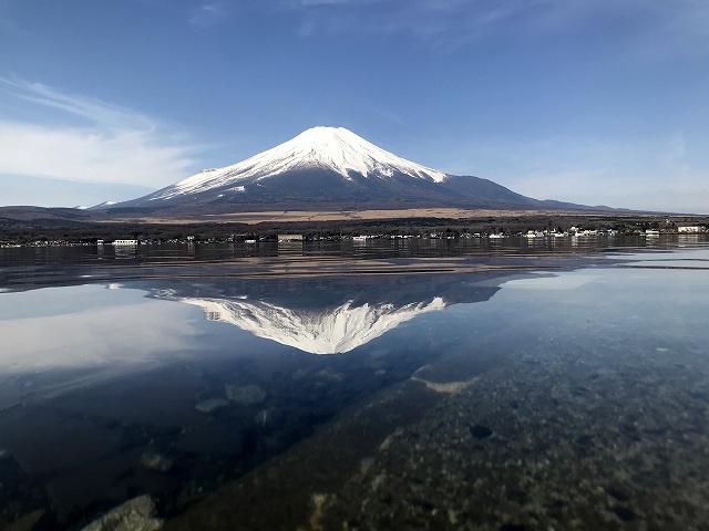 観光はだーれもいない早朝にする方針なので、まずは逆さ富士が見られるかな?と思って山中湖に向かいます。ちょっと波打ってるから無理かと思ったけどすっごいの撮れました!