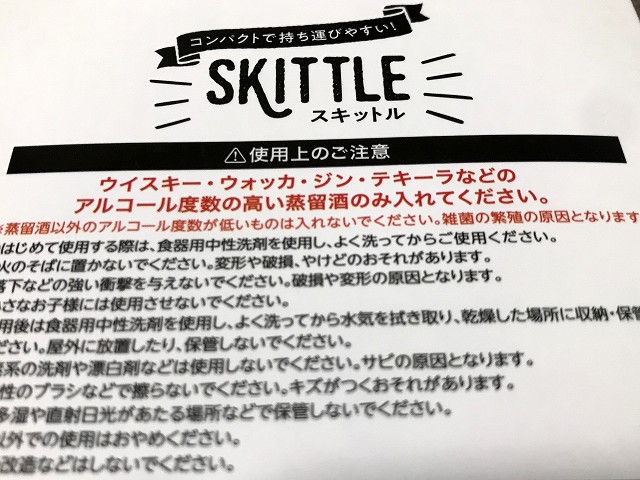 以前からスキットルを買おうとネットで調べてましたが、前日にたまたま立ち寄ったWattsで330円で売ってました。このスキットルはお買い得でしたね〜。アルコール度数が高いお酒を入れてねって、何度までを想定してるのかな?この記事をみるとワインとか焼酎もよさそうなので、今度はワインですね。(雑菌がわくんだったらヤバいけど、、キャンプの前日に入れて飲み切るからOK!)