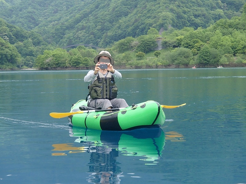 奥四万湖は一周4キロくらいしかないので急ぐ必要もなく、のんびりプカプカできます。写真を撮りまくってるとおいて行かれてしまうけど、追っかけなくてもいい安心感がありますね。