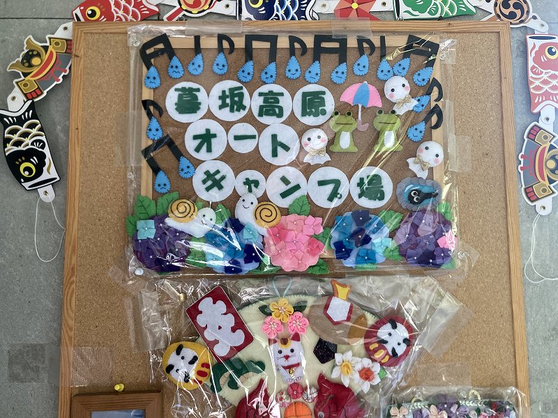 サイトも100くらいあるし、芝サイトも砂利サイトも綺麗です。トイレはウォシュレットだし、炊事場は給湯器ついてるし、掃除も行き届いてます。子供の日にむけて飾りつけされてたんですね。そういえば奥にはブランコとかありました。