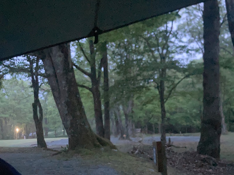 寒い場合はタープでハンモックを包みますが、予想していたより寒くないし風が全くないのでタープは開いたままで寝たので、夜の間中ずっと景色が見られるのもいいんですよね。何も見えないテントで外でガサガサいうとかなり怖いけど、見えてると案外怖くない(クマだったらダメですけどね〜)