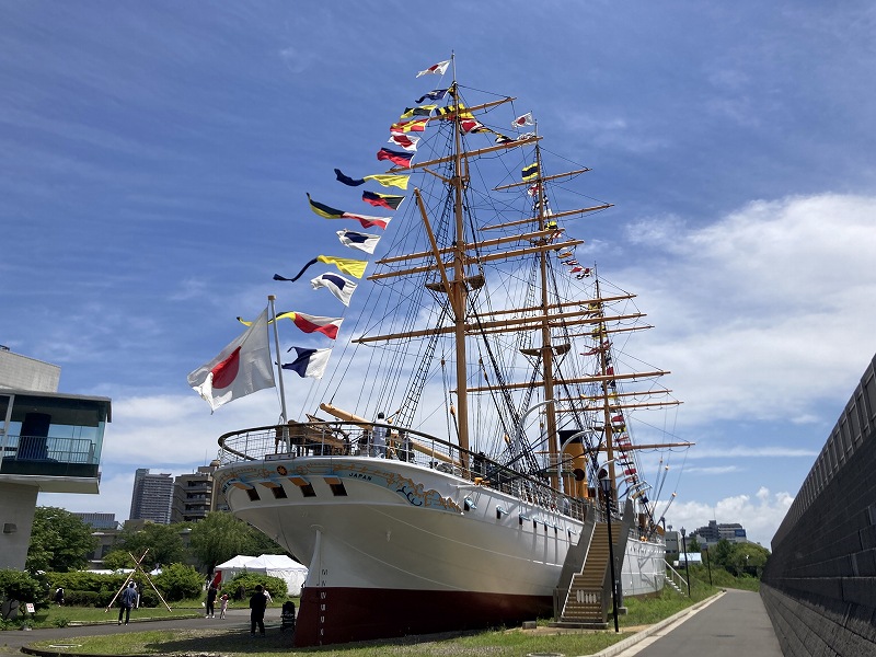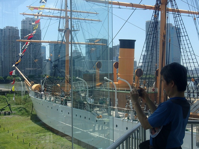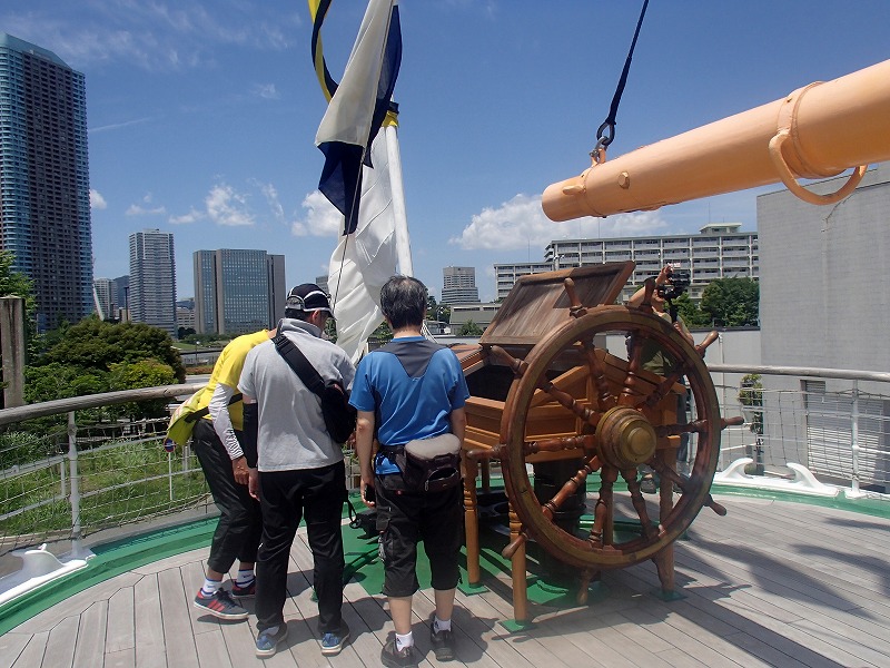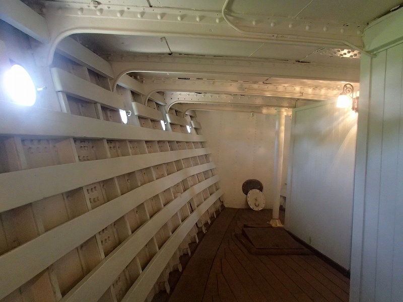 明治丸は日本で現存する唯一の鉄の船なんですね。(それ以降は鉄ではなく鋼だそうです)船内も見学できるのですが、明治天皇も乗船したとのことできれいな船内でした。船首にある船室(船員がいる部屋)だけは、倉庫みたいでしたけどね〜