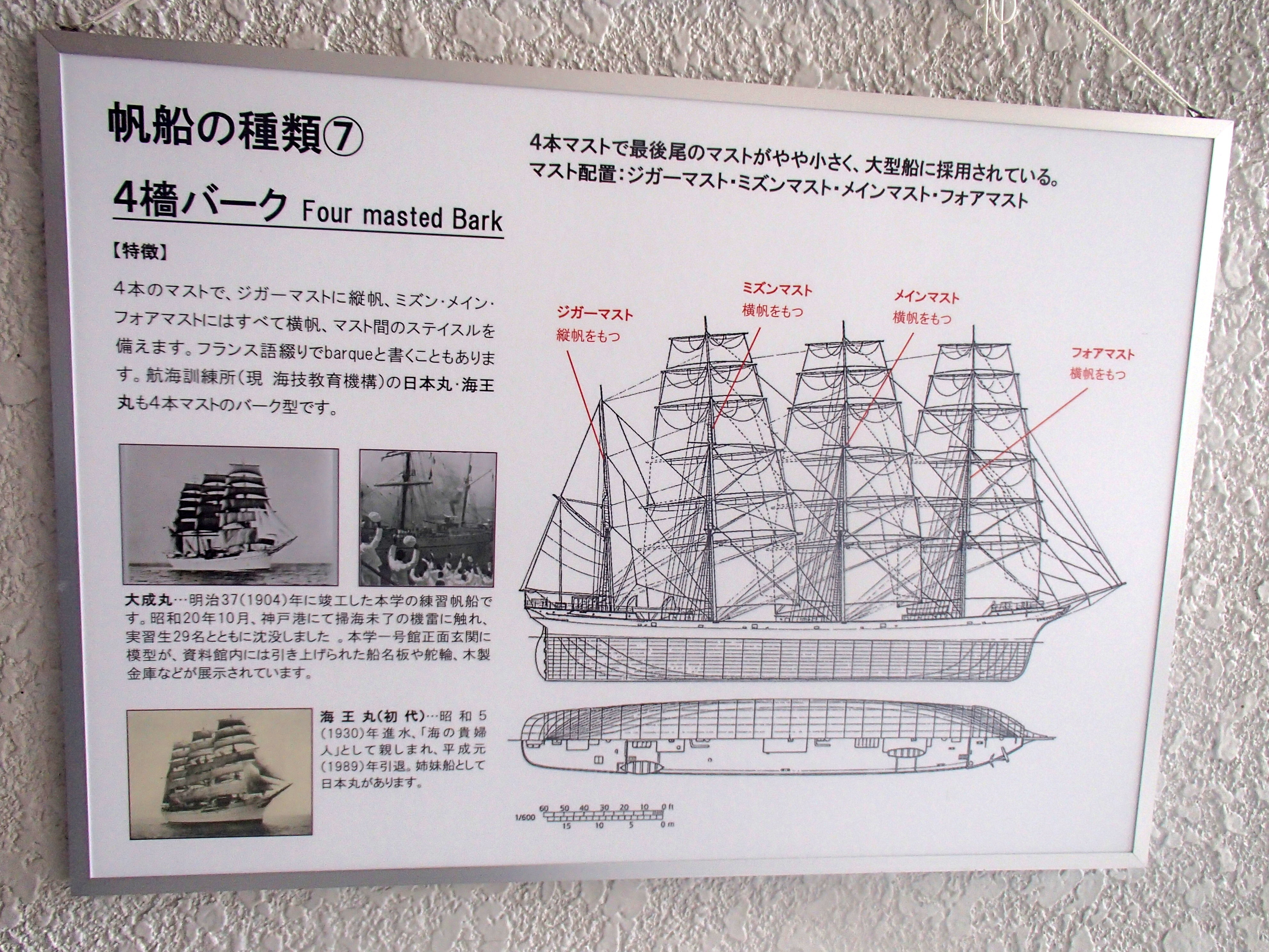 商船学校で訓練に使う日本丸や海王丸はバーク型なんですね。僕のいとこは弓削商船大学で海王丸で訓練してましたので、命綱無しでマストに登ってました。僕が中学生の時に「赤道は赤い線があるんだよ」ってウソつかれて、しばらく信じてました(笑)