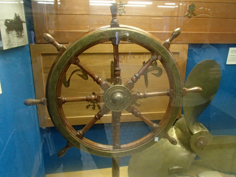 設備展示もいろいろありましたが「匙型方位磁石」や「操舵舵」が気になりました。特に「操舵舵」は父親が三宮の地下街に展示されていた日本丸の額(2*3メートルくらいある写真)と一緒にもらってきたものが僕の部屋にあったので懐かしいです。(今もある)