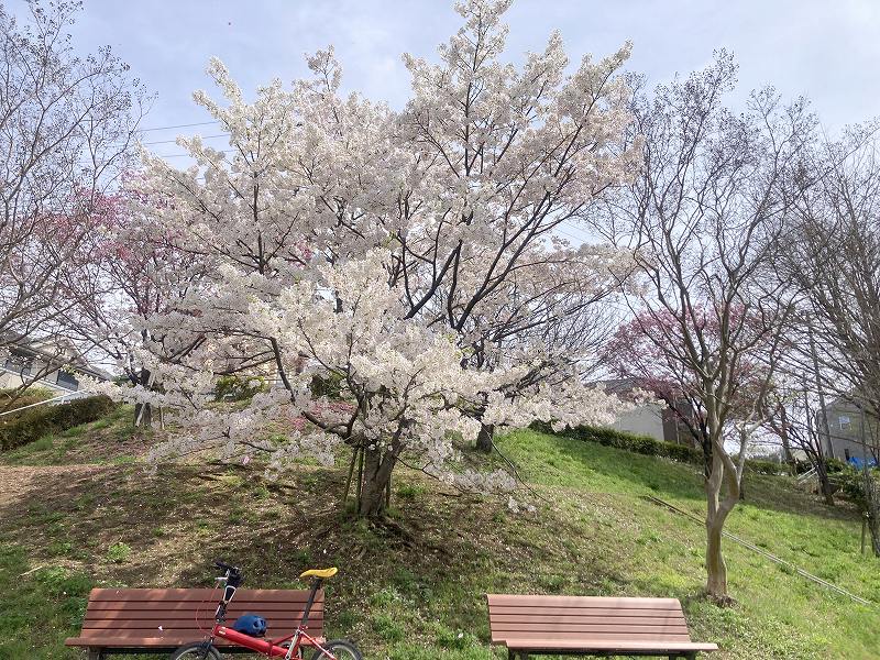 この辺りは山を越えると「大栗川」の桜が楽しめそうなので頑張って山越えしたら、桜がないサイクリングロードでした。下流まで行くと桜が満開でしたけどね。ぐるっと回って再び「乞田川」の桜並木を堪能しました。